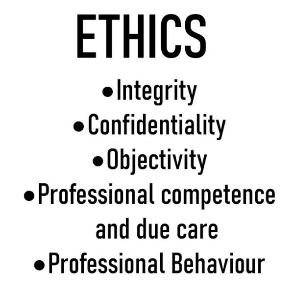 Professional competence: I will not take on work I am not capable of and in the case of the accounting side of my work, I will only do what I am licenced to do and have the skills and experience for.